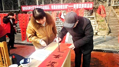 1月28日,赤壁市蒲纺桂花树社区联合桂花树老年协会、社区志愿服务队,在社区医院小区举办“新春送春联”活动,以笔墨传情,为居民送上新春祝福。