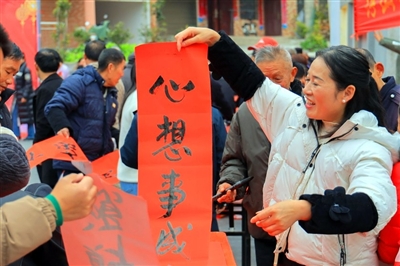 居民王阿姨捧着刚写好的“福”字笑称:“手写的春联才有年味,这墨香比印刷的香多啦!”