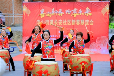 文艺表演环节掌声雷动,社区舞蹈队带来的《欢聚一堂》舞姿翩跹;社区老年太极拳队动作行云流水,一招一式间尽显太极神韵;自编自演的方言快板《打麻将》逗得观众前仰后合。