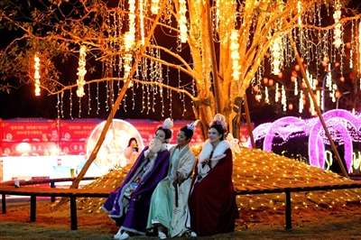 “10后”女孩李盈萱一家四口身着精致汉服,漫步灯影之间,频频驻足拍照,定格阖家团圆的温馨画面。家长程女士笑着说:“逛灯会是过年独有的仪式感,我们一家人特意盛装而来,在这里提前感受到了浓浓的年味。”