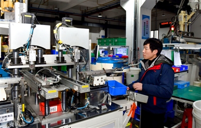 2月9日,通城经济开发区湖北惠祥电子科技有限公司车间,工人们正在赶制订单。该公司主要生产插头内架、传感器系列产品,年产值2亿元以上。 记者 夏正锋 摄