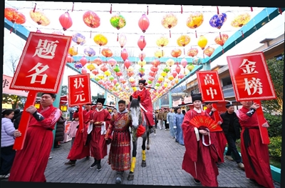游客邱扉炀带着孩子专程前来,她表示:“孩子以前只在课本上读过‘状元’的故事,今天能亲眼看到‘状元巡游’,还得到了‘状元’的点睛祝福,这个元宵节过得特别有文化和纪念意义。”