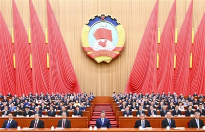 三月的北京,春启华章。人民大会堂大礼堂灯光璀璨,气氛隆重热烈。中国人民政治协商会议会徽悬挂在主席台正中,十面鲜艳的红旗分列两侧。