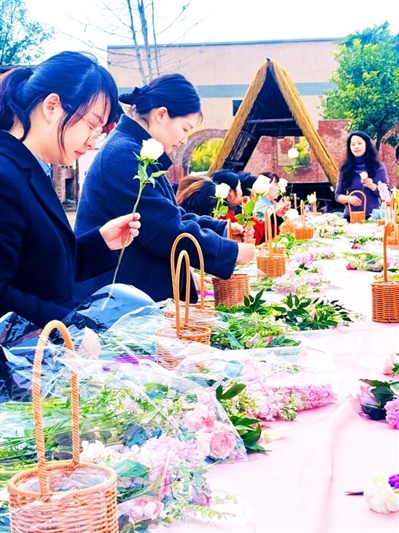 活动邀请专业花艺师现场教学,讲解花材特性、配色逻辑与插花技巧,演示修剪、塑形、构图等实操要点,员工巧手创作专属小花篮,在花香中陶冶情操。活动同步嵌入读书分享环节,交流读书感悟、强化思想引领;结合女职工普法宣传月要求,普及权益保障知识,筑牢法治意识。“美育+理论+普法”多元形式,丰富了女职工精神文化生活,彰显其昂扬向上、履职尽责的巾帼风采。