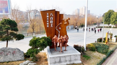 2月24日,记者来到通城县柳堤路,经过改造后的柳堤公园焕然一新,一座以抗战历史为主题的“八百壮士”文化街区落成开放,一面面刻满历史的文化墙,一块块饱含深情的诗词石刻,一座座栩栩如生的雕塑,静静述说着通城籍“八百壮士”的英勇事迹。