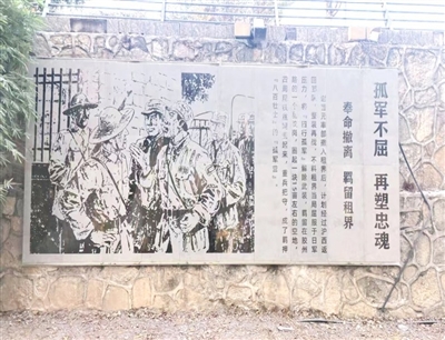 “中国不会亡,中国不会亡,你看那民族英雄谢团长;中国不会亡,中国不会亡,你看那八百壮士孤军奋守东战场。”《八百壮士歌》石刻前,82岁退休教师刘晓梅神情庄重地哼唱,节奏铿锵有力。