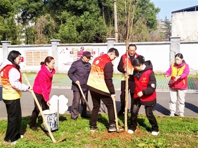 本报讯 通讯员熊春、饶玉玲报道:3月10日上午,“共植一片绿,同树文明风”主题活动在咸安区永安街道凤凰社区湖发小区共享花园开展。