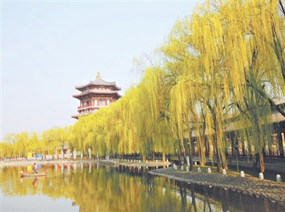 隋代的东都洛阳,城里树木葱茏,“榆柳交阴,通衢相注”,城内主要大街天津街除榆树、柳树外,还分植“樱桃、石榴两行”,“通泉流渠,映带其间”。