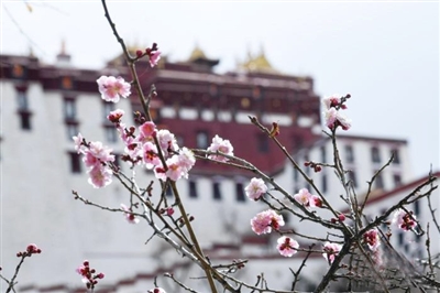 近日,西藏拉萨宗角禄康公园,桃花竞相绽放。阳春三月,古城拉萨杨柳发芽、桃花初放,春意渐浓。(本报综合)