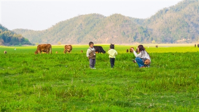 春日的十里画廊,隽水河蜿蜒流淌,两岸楠竹成林、绿意绵延,宛如一幅天然山水画卷,令游客沉醉其中。