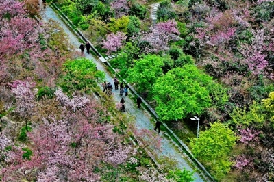3月17日,福建连江晚樱绽放春意浓。阳春三月,连江丹樱农场万株晚樱迎来盛开期,层层叠叠的花瓣缀满枝头,将农场晕染成绚烂的春日油画。