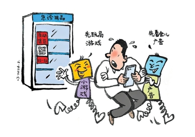 售货机扫码购物,广告弹个不停,令人不胜其烦。