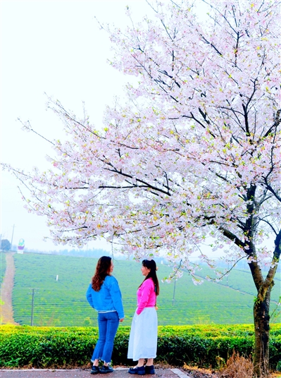 近日,春雨连绵,赤壁市万亩茶园新芽吐翠、樱花盛放。清风裹挟着茶香与花香扑面而来,缤纷花径蜿蜒伸向薄雾笼罩的远山。春日茶园景致如画、茶香四溢,不仅吸引众多游客前来踏青赏景、尽享生态田园的春日美好,更为当地茶旅融合发展增添新亮点。