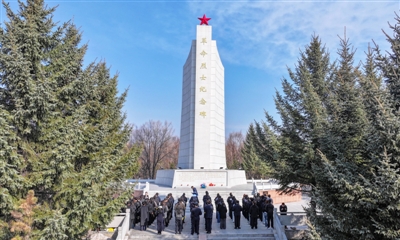 ① 4月1日,黑龙江省绥芬河市各界青年代表在革命烈士纪念碑前缅怀革命先烈。