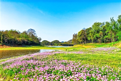 春风拂面,万物复苏。赤壁市红林山林场,在暖阳与细雨的滋养下,漫山苍翠舒展,新绿绵延不绝;成片紫云英如紫色波浪,与碧绿湖水、苍翠山林相映成趣,勾勒出一幅生动的春日生态画卷。