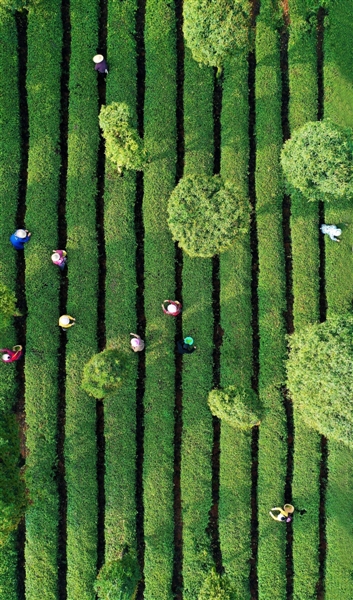 嘉鱼县潘家湾镇的田垄上,旋耕机往复穿梭,将土地深耕细作,整出一行行笔直的垄沟;一旁的农户俯身铺开银亮的地膜,如为大地披上一层保湿保温的轻纱,静待新苗破土。咸安一处生态茶园里,又是另一番忙碌景象——人影绰约,笑语声声,春茶采摘正当时。一双双巧手在翠浪间轻盈跃动,将枝头鲜嫩的春芽一一揽入篓中。
