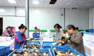 不加工,一场空。为补齐产业短板、提升产品附加值,桂花泉镇全力延伸雷竹产业链,做强配套加工支撑。农户采收的鲜笋,第一时间被送往位于该镇桂花村的湖北省绿峰农业科技开发有限公司开展标准化初加工,车间内分拣、清洗、预冷等工序高效运转,既有效拉长鲜笋销售窗口期、提升产品附加值,也为周边群众搭建起稳定的就近就业平台。