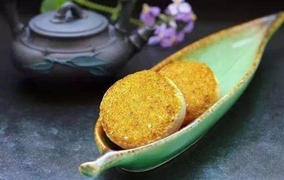 馅心更是文章。通山多山,盛产桂花与芝麻,这便成就了麻饼独特的风骨。黑芝麻须是当年新收,文火慢炒至爆裂出香,石臼捣成细末,拌以金桂糖渍的桂花酱,再加少许橙皮丁解腻。甜,却非齁甜;香,乃是复合的香。芝麻的醇厚托着桂花的清芬,橙皮又在中段挑出一丝明亮的酸,三者相济,如一曲丝竹,高低错落,余韵悠长。