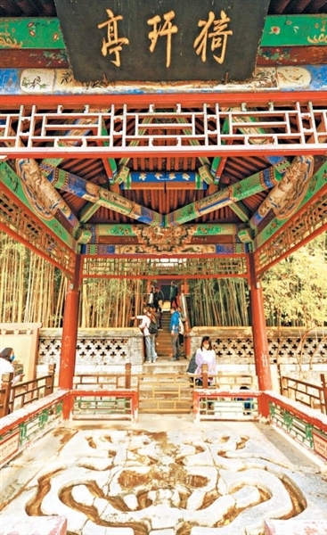据统计,目前北京地区现存的完整流杯亭有四座,即故宫里的禊赏亭、西苑三海的流水音亭、恭王府内的沁秋亭以及潭柘寺的猗玕亭。如今,人们静静坐于亭中,仍能感受到流杯亭带来的欢乐美好与文韵巧思。
