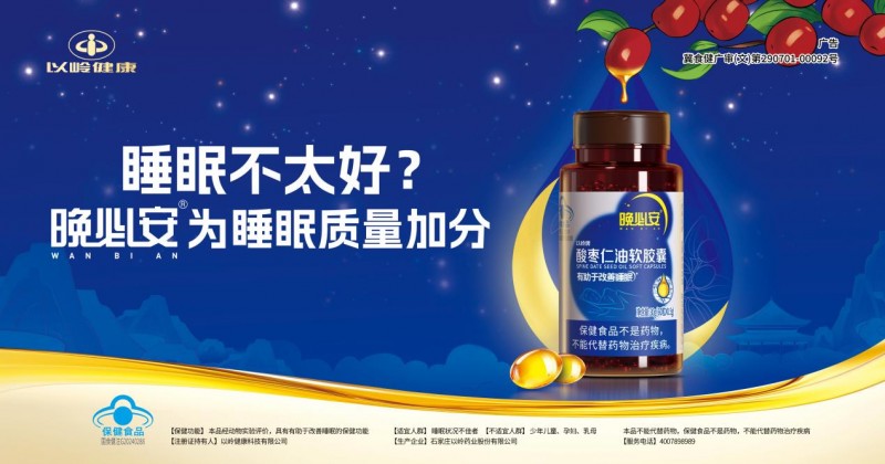 除了从行为、思想上为睡眠“减负”,运用蕴含“传统中医药+创新科技”的产品也是现代人为睡眠质量加分的便捷选择。以岭健康晚必安系列产品以中华通络养生八字经中的静神理论为指导,为具有睡眠问题的人们提供独具中医养生智慧的睡眠解决方案。其中最具代表性的晚必安酸枣仁油软胶囊,以经典养心安神药材——酸枣仁为原料,萃取道地邢台酸枣仁的精华油脂,具有改善睡眠的保健功能。