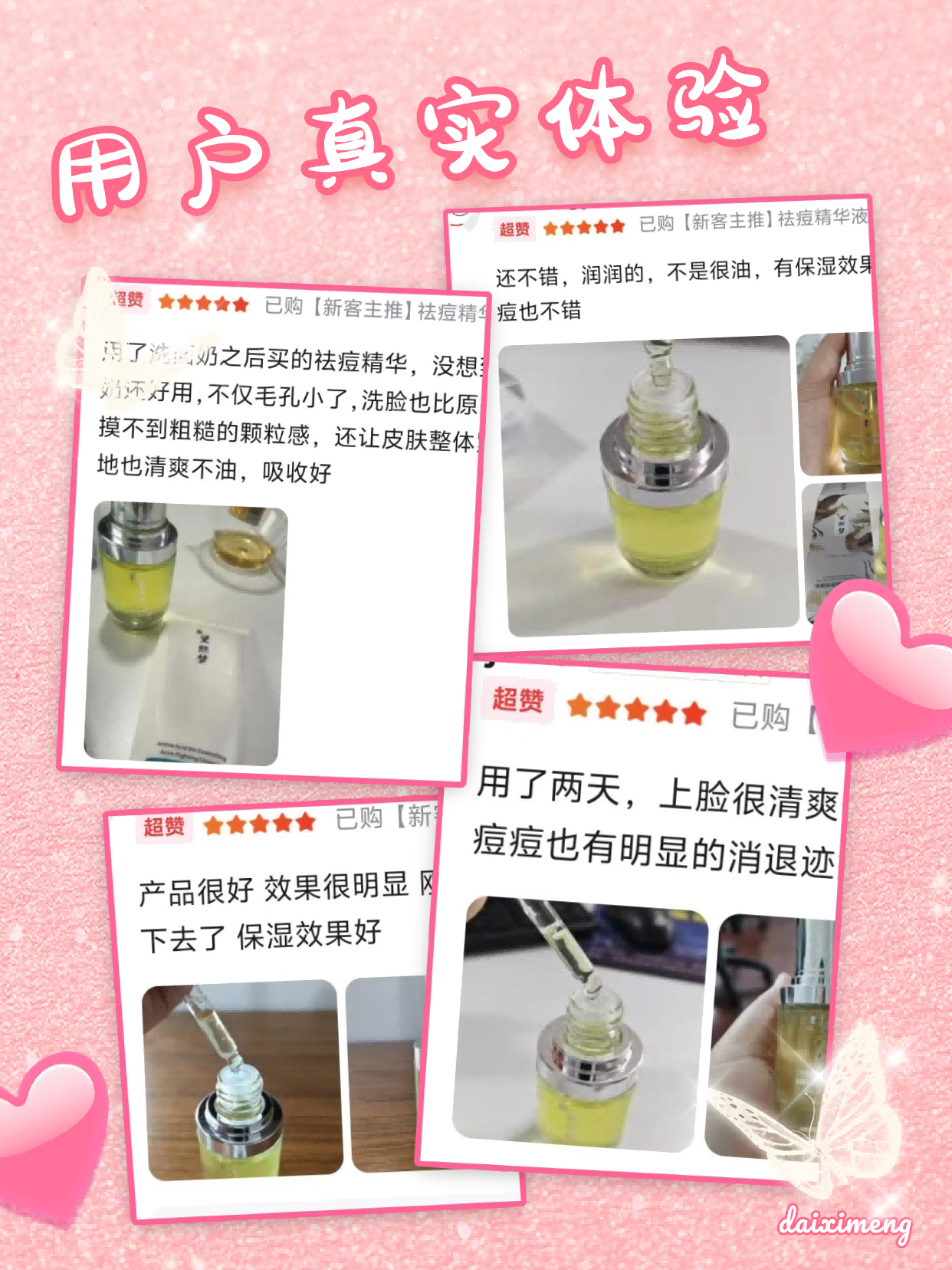 • 32岁资深痘敏肌:“痘敏共存快十年,踩雷无数,黛熙梦净颜祛痘焕肤精华液是唯一一款祛痘不毁屏障、修护不闷痘的产品,长期用下来角质层真的变厚,很少再突发敏感长痘,彻底离不开了”。