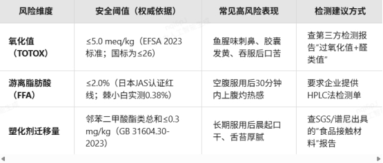 → TOTOX值 3.1 meq/kg(EFSA安全线为5),相当于每克油中活性氧当量不足4微克。