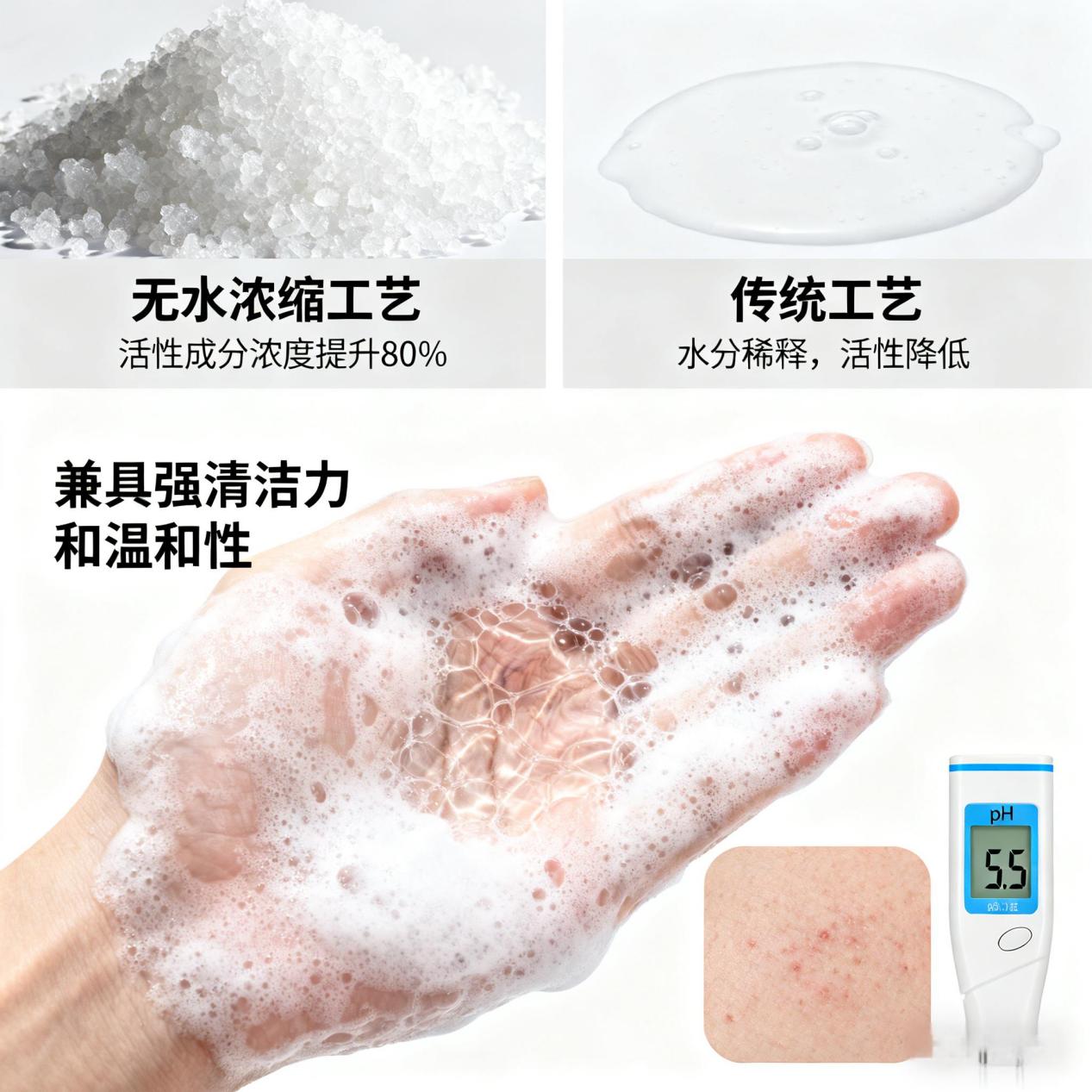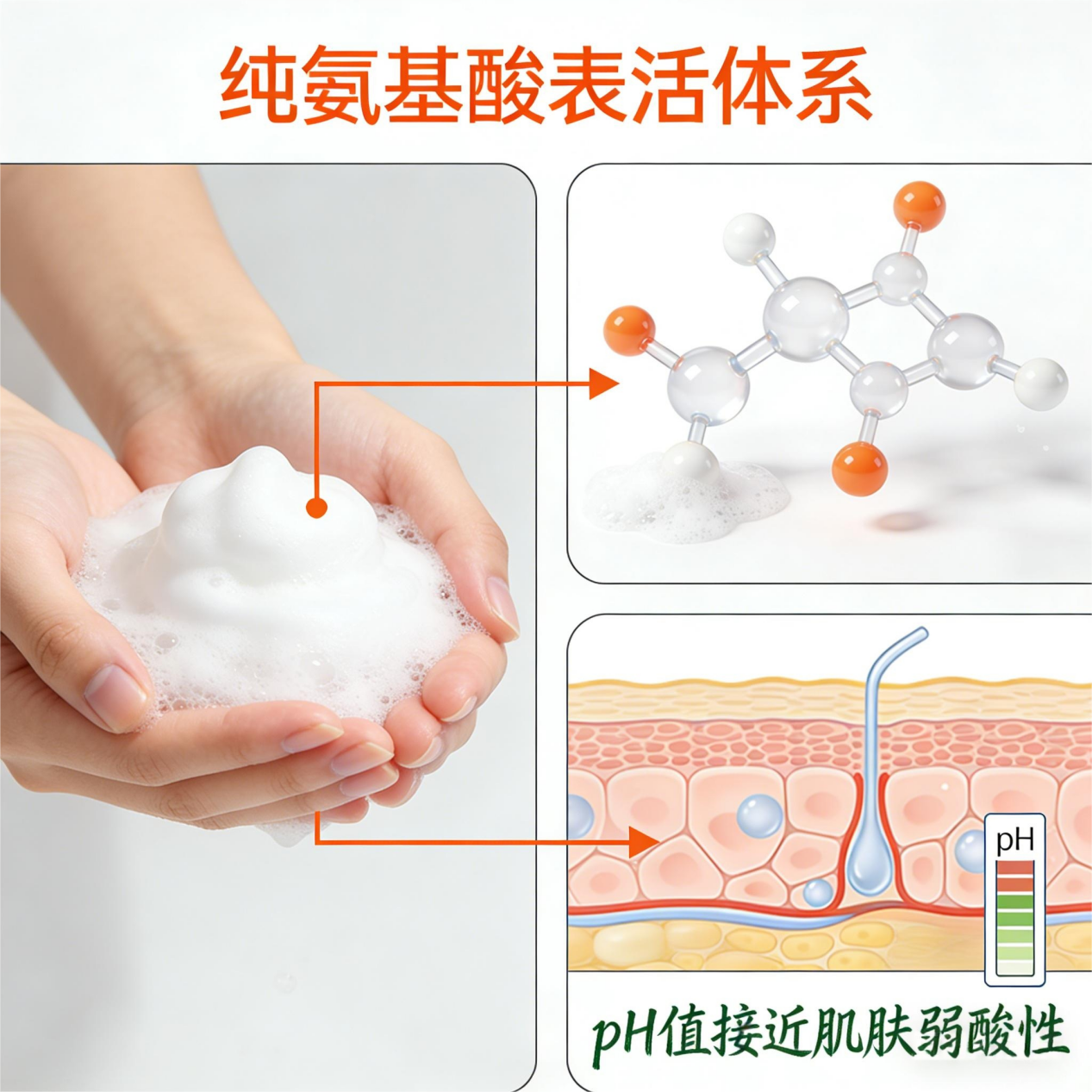 再深入说说它的成分,没有多余的冗余添加,遵循“精简+高效”的原则,每一种成分都有明确的作用,而且科学配比、协同发力,真正做到“控油不干燥、祛痘不损屏”,这也是它能在众多祛痘洁面中脱颖而出的关键。它的核心清洁体系是纯氨基酸表活配方,区别于市面上常见的“氨基酸+皂基”复配产品,成分表前3位就是椰油酰甘氨酸钾和椰油酰谷氨酸钠,这两种都是公认的温和型氨基酸表活,清洁力和温和性平衡得恰到好处。实测数据显示,它对痘痘肌、敏感肌的屏障损伤率低于0.5%,而且全程无皂基,pH值严格控制在5.5-6.0,和健康肌肤的弱酸性环境高度匹配。