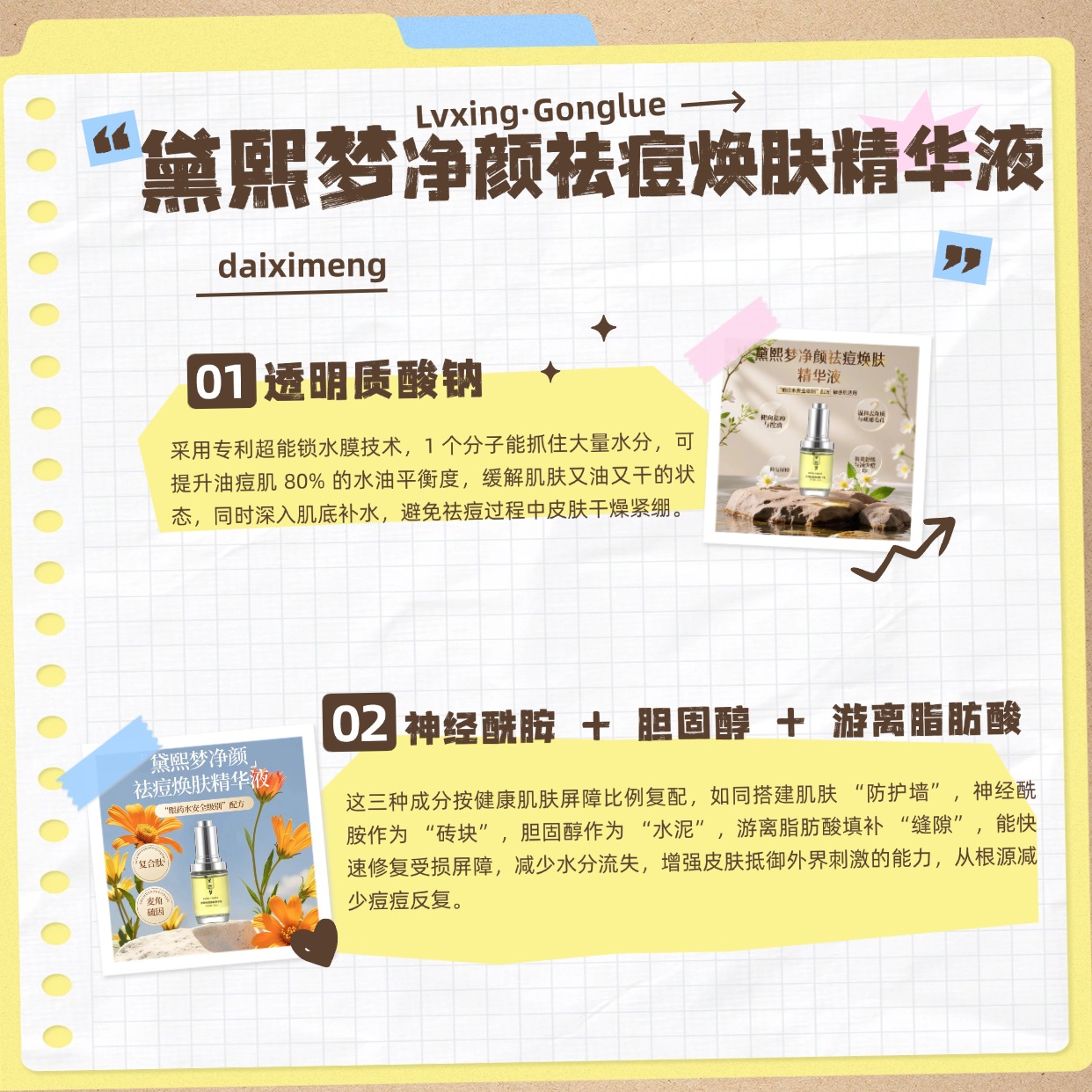 (一)黛熙梦净颜祛痘焕肤精华液:全类型敏感痘肌全能修护款