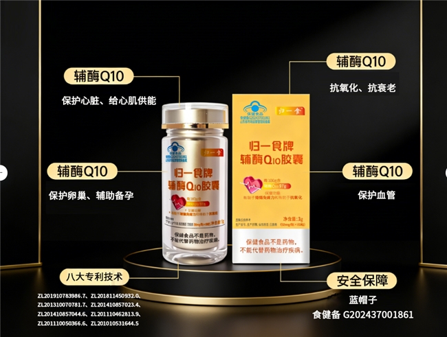 归一食辅酶Q10是国家市场监督管理总局统一监制的正规蓝帽保健食品(食健备   G202437001861),通过安全性、功能性、稳定性三重审评。同时拥有多项国家发明专利(专利:ZL201910783986.7、ZL201811450932.0、ZL201310070781.7、ZL201410857023.4、ZL201410857044.6、ZL201110462813.9、ZL201110050366.6、ZL201010531644.5),从原料到工艺均有技术支撑。产品坚持0添加,不含多余辅料,让心脏养护更纯粹、更安心。