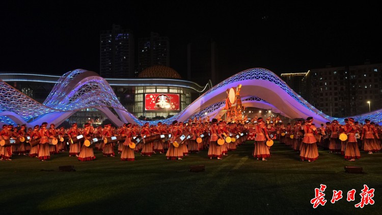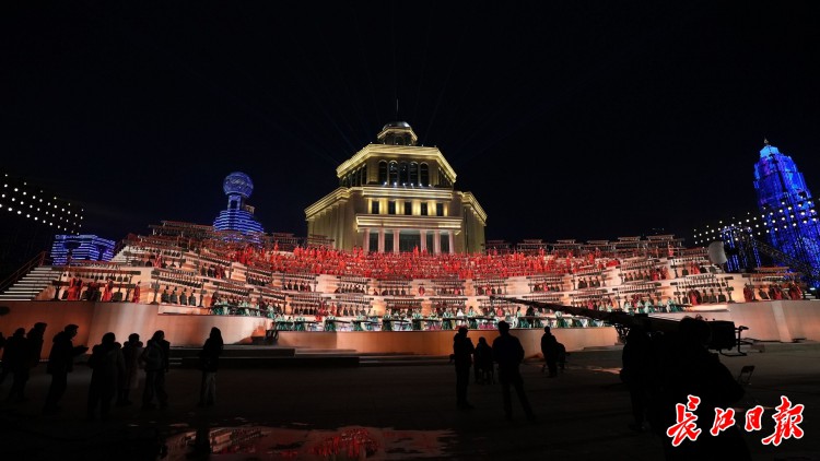“黄鹤楼前的光屏寓意着长江、浪花,亮起来时是一条绝美的凤尾……”“光谷的一束光,是科技之光;黄鹤楼呈现的是英雄之光,横渡长江博物馆亮起的是文化之光……”在春晚的舞台上,一束“光”不仅仅在光谷星河燃起,也在黄鹤楼、横渡长江博物馆闪耀登场。三大主舞台的炫酷灯光秀遥相辉映,折射到长江江面上,江面上的游船熠熠生辉,展现了大江大湖大武汉的英雄城市之美、荆楚文化之美以及科技之美。