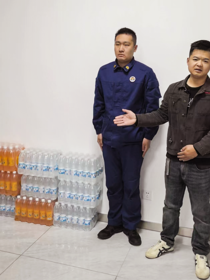 “他们守护城市,我想守护他们” 据何达介绍,近期常州气温逐渐攀升,他联想到消防员们日常需穿着厚重的防护服执行任务,高温下体能的消耗与艰辛可想而知。为此,他自费采购了200余瓶矿泉水和解暑饮料,并亲手将饮品送到消防员手中。“每次看到消防员逆行火场的新闻,既感动又心疼。他们用生命守护我们,我们也该用自己的方式支持他们。”何达的言语质朴却真挚。
