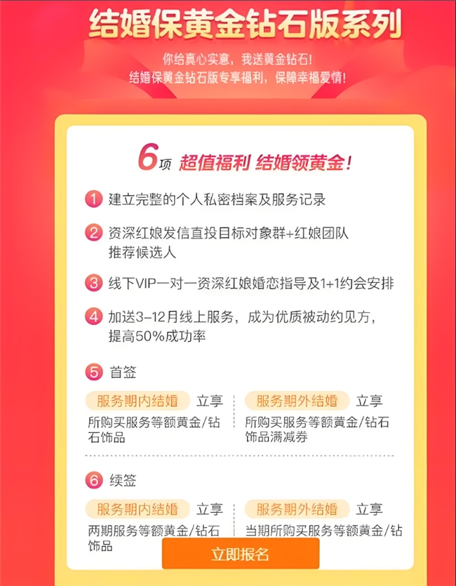 此外,在双方确定关系后,世纪佳缘还会为购买“结婚保”的用户提供恋爱咨询服务,用户在恋爱过程中有任何问题,都可以找世纪佳缘的红娘帮忙解决,如果解决不了,也可以解绑再安排,直到用户真正迈向幸福下一站——婚姻。