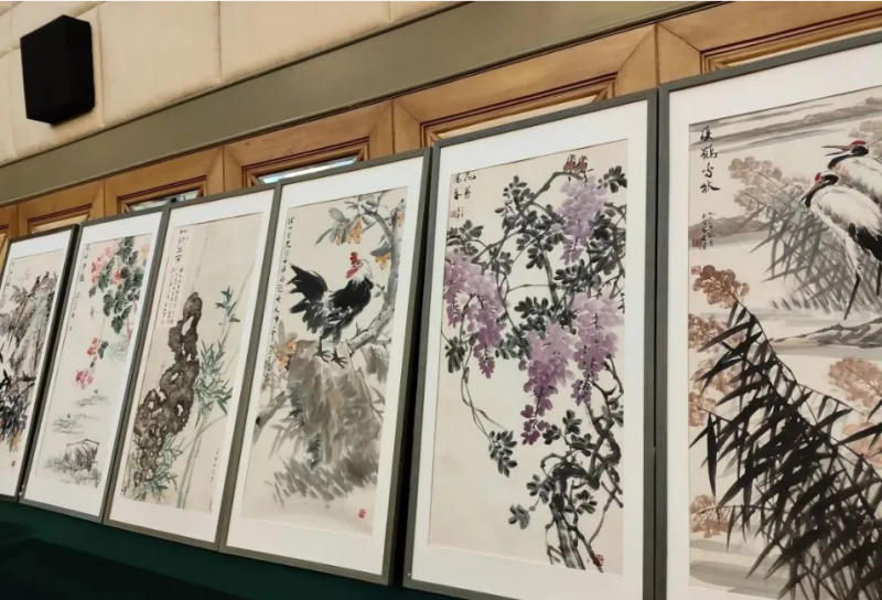 本次展览主题为“世纪丹青 百岁墨韵”,集中展示了袁存建风格多元且极具辨识度的画作,从灵动的花鸟,到磅礴大气的山水,再到细腻传神的人物,无一不让观者驻足凝视。其花鸟作品中,墨色晕染间,花卉似有馥郁香气飘散,鸟雀仿若振翅欲飞,鲜活生命力跃然纸上;大幅山水更是气势恢宏,峰峦叠嶂、云水交融,皴擦点染间尽显山河壮阔,凝聚着画家对自然万象的深刻体悟。