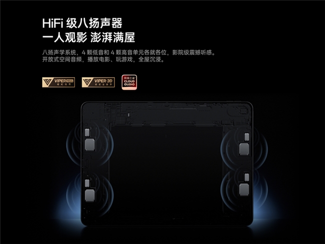 此外,一加平板 2 Pro 搭载 Hi-Fi 级八扬声器系统,拥有 4 个高音超宽频单元与 4 个中低音高功率单元,以及 9.68cc 超大音腔,可带来澎湃声场,配合出色的屏幕显示素质,打造影院级的震撼视听体验。一加平板 2 Pro 还首次搭载独家自研的「全息音频 2.0」,实现多音频流并行播放、互不干扰,还能呈现音源在不同空间方位的效果。同时,针对平板的使用特点,一加平板 2 Pro 还支持旋转立体声功能,可根据握持方向自动切换左右声道,确保用户时刻拥有最具临场感的视听感受。