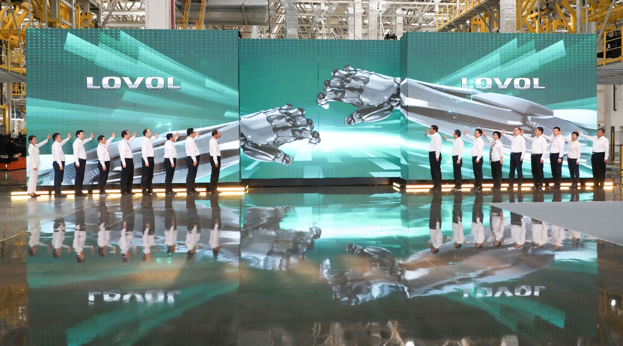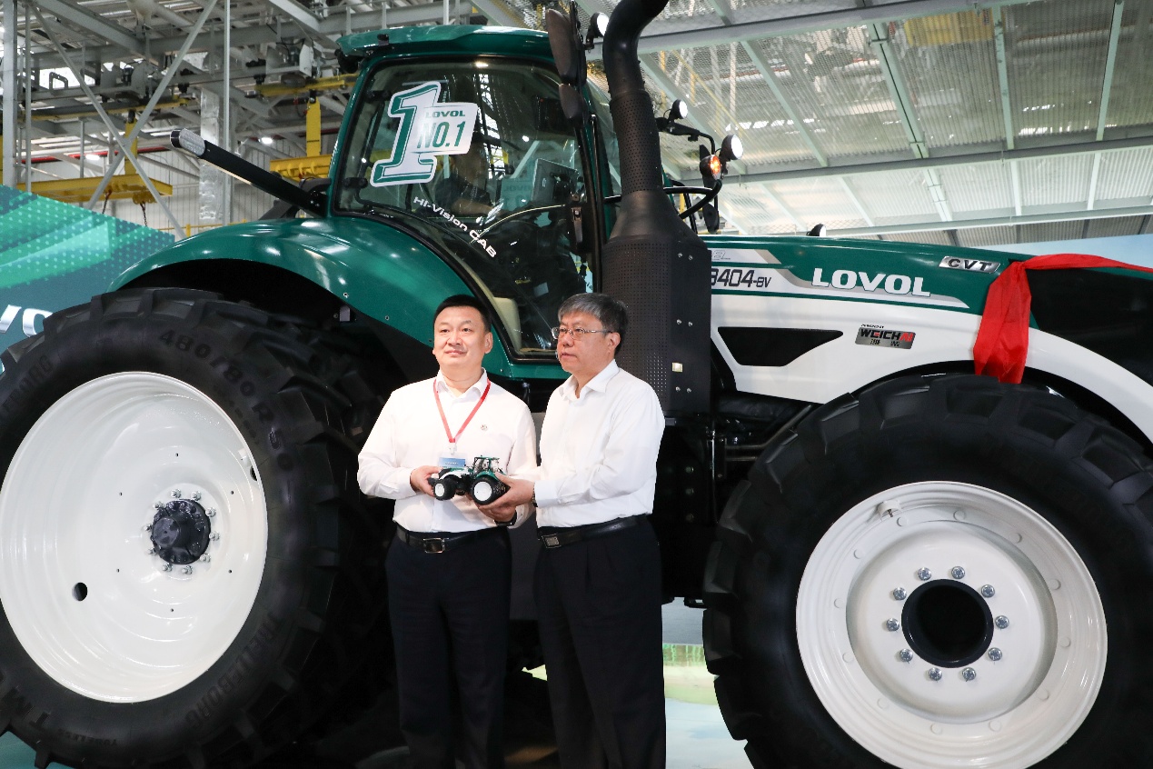 活动现场,陈志、张红旗、满慎刚、刘运等领导共同按下启动按钮,基地首台产品缓缓下线,标志着雷沃智慧农业智能拖拉机制造基地正式投产。