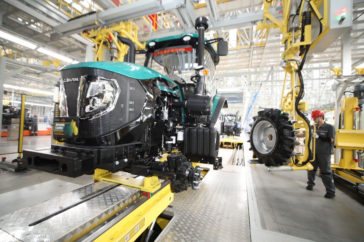 从智能化生产到数字化管理,从精密工艺到高端产品,这座“绿色智慧工厂”全面对标世界一流,开国内农机行业“智造”之先。“5G+工业互联网”平台将机加、装配、物流等环节无缝衔接,生产线从第一道工序到最终检测,通过智能管理系统与数字化设备,全程实现了高度智能化——机加自动化率达93%、焊接自动化率 72%,涂装自动化率 95%,装配自动化率更是处于行业领先水平,产品一致性达到国际顶尖水平。