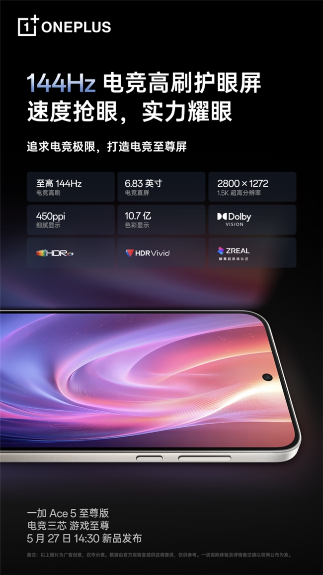 5月23日,一加官宣即将发布的一加 Ace 5 至尊版,将搭载一加史上最强144Hz 电竞高刷护眼屏,拥有快人一步”的显示速度和旗舰级护眼明眸护眼功能,让用户尽兴游戏的同时依然舒适护眼。同时,一加官方宣布一加 Ace 大使 @陈都灵 将于5月27日惊喜空降新品发布会现场,领衔和平精英「游戏至尊挑战赛」,还将带来多项惊喜福利。