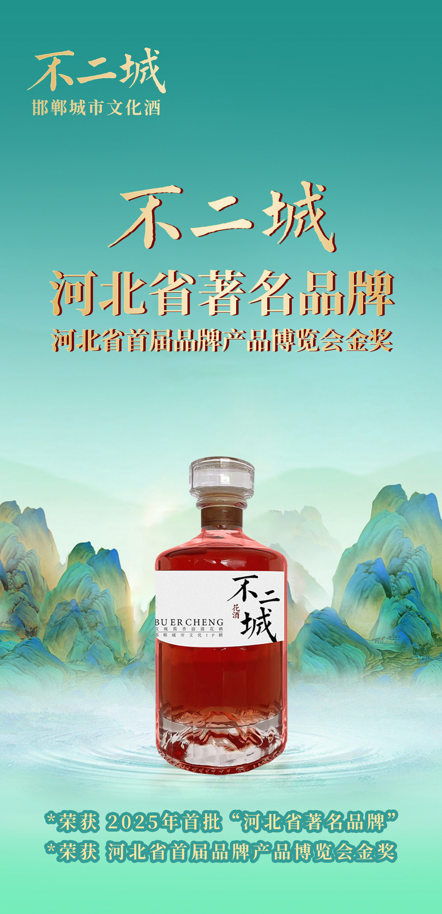邯郸不二城酒业旗下的邯郸城市文化酒品牌“不二城”,被评定为“河北省著名品牌”和“河北省首届品牌产品博览会金奖”。