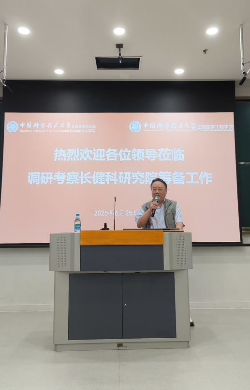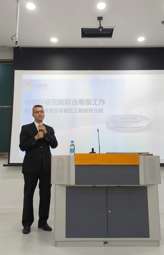 中国科学技术大学生物医学工程学院执行院长、长健科研究院院长周少华教授,就长健科研究院成立背景,组成单位,技术优势,发展方向,协同创新,可研报告等作了主题演讲,专题汇报。周少华院长详细介绍了长健科研究院团队组成情况,包括长健科普惠壹号(苏州1290)服务工程主创团队、江苏省政府大数据管理中心团队、国家健康医疗数据(东部)中心数据应用架构合作团队、科大讯飞暨讯飞医疗 AI 智能全科助医和健康晓医合作团队、江苏省智慧健康数据信息支撑专网平台合作团队、紫金山实验室国家确定性网络和未来网络合作团队、南京市大数据集团可信数据和可信数据空间合作团队、复旦大学附属中山医院数智心脑血管健康临床合作团队、复旦大学附属华山医院数智射波刀放射外科临床合作团队、康众医疗股份数智普惠数智群医学集成诊断体系团队、瑞尔医疗科技射波刀体系团队、中科院(无锡)物联网发展研究中心工作团队、东软医疗保险保障研究院合作团队、杭州致远医学检验和 HP 感染消化病防控团队、格诚软件通用数据平台架构软件合作团队、苏州市卫健委、疾控局及疾控中心、医保局(基本公共服务侧)、苏州市数据局、苏州日报集团(数据要素发展和健康传播)、江苏省广电网络股份苏州分公司(基本医疗和健康服务网络)、苏州国发集团、苏州市民卡公司(数智健康服务支付金融服务)、苏州市职业大学数智健康人才和职业发展合作团队(职业教培)、苏州市工业园区 biobay 产业园(数智健康产业生命数据需求侧)、苏州市新区医疗器械产业院(数智健康产业生命数据需求侧)、苏州市苏化产业园(数智健康产业发展生命数据需求侧)等等。
