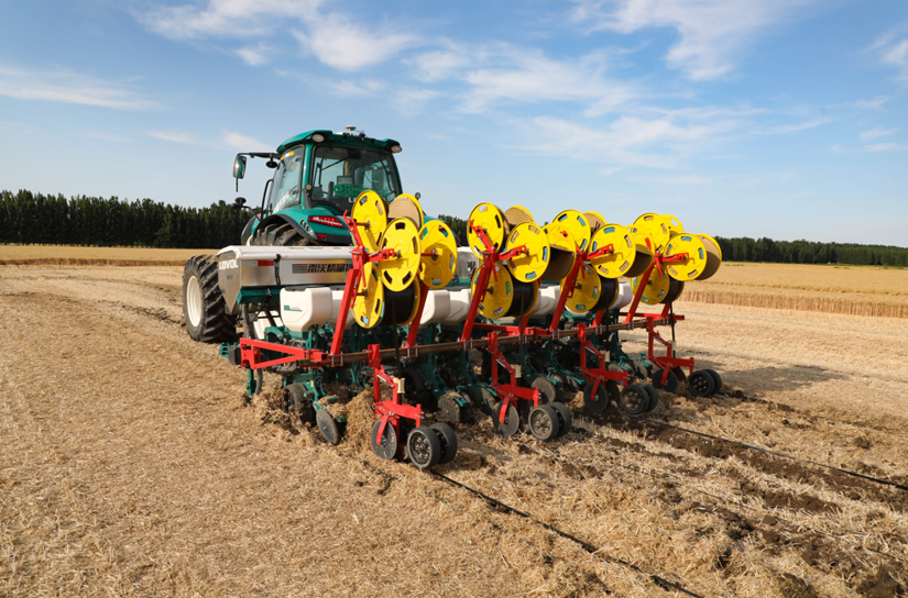 位于山东高密的雷沃智慧农场里,数字三夏的图景更为壮阔。无人收割机刚卸完最后一车小麦,搭载灭茬机的雷沃无人驾驶拖拉机随即驶入田间开展灭茬作业,它自主行走、精准转弯,为后续精准播种奠定基础。紧随其后的雷沃CVT大马力智能拖拉机搭载电驱精量播种机一次性完成碎土、整地、镇压、播种等六道工序。10余台设备通过云平台联动,形成“耕种管收”闭环。