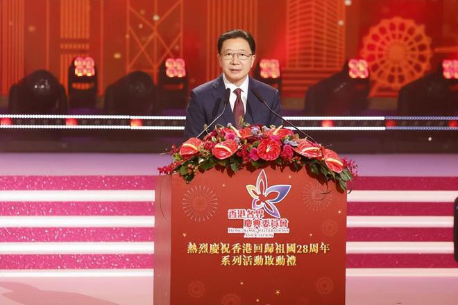 (香港 .2025年6月30日)— 香港各界庆典委员会以「同心携手创辉煌 由治及兴谱新篇」为主题 .举办庆 祝香港回归祖国28周年系列活动 .其中两项重点活动包括「维园庆回归」和「星耀紫荆庆回归」晚会。 为隆 重其事 .香港各界庆典委员今晚在香港体育馆举行庆回归系列活动启动礼 .为连串精彩的庆回归活动揭开帷幕。