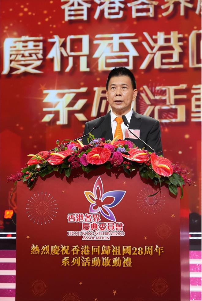 庆委会谭锦球主席致辞时表示,香港各界庆典委员会自2006年成立以来, 已连续19年举办庆回归活动。 今年 的主题为“ 同心携手创辉煌 由治及兴谱新篇”,庆祝活动包括“星耀紫荆庆回归” 晚会、维园庆回归及回归 杯足球赛、惠泽万家消费优惠等500多项活动。 谭锦球表示, 得举世公认的成功。 他引述数据强调,在中央政府大力支持及特区政府带领下,香港今年再次被评为「全球 最自由经济体」,世界竞争力跃升至全球第三,而人才竞争力亦重返全球前十。