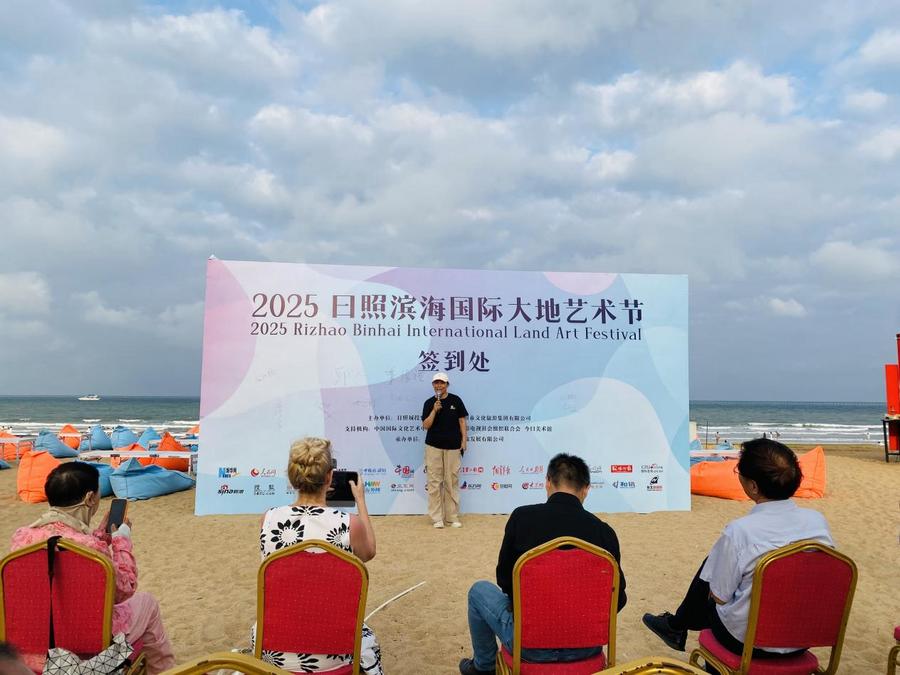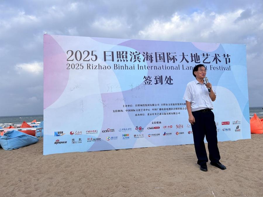 开幕式上,中国大地艺术先行者、活动总策划雕塑家邱天在致辞中表示:“日照‘日出初光先照’的独特魅力,为艺术创作提供了无限灵感。我们希望通过日照大地艺术节,让艺术走进生活,让市民和游客在自然与人文的交融中感受艺术的温度。”来自朝鲜的艺术家代表孙国娟则强调:“艺术不应局限于美术馆,而应成为城市的一部分。这次市集将打破传统边界,让艺术真正融入大众的日常体验。”参与活动嘉宾有:
