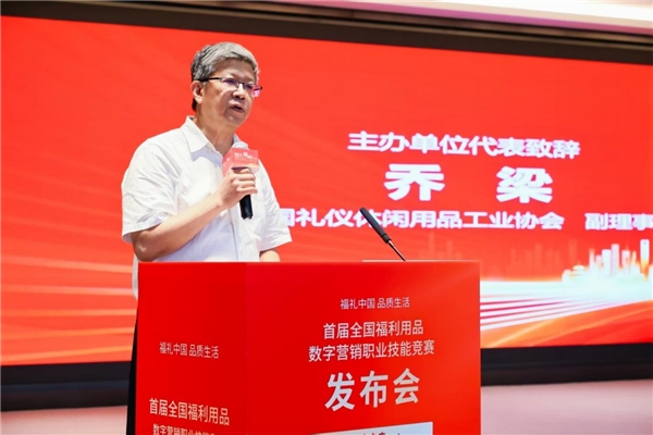 乔梁代表大赛主办单位中国礼仪休闲用品工业协会致辞。他表示,新时代的职业技能竞赛,比的是技术,赛的是情怀,拼的是未来。当前,数字经济已成为推动社会高质量发展的新引擎,福利用品承载着关爱特殊群体、传递社会温情的使命,但传统营销模式在精准触达、用户体验等方面存在短板。本次竞赛以“福礼中国 品质生活”为主题,旨在通过数字化手段推动福利用品行业的创新发展,培养福利用品行业数字营销专业人才,推动行业可持续发展。乔副理事长代表竞赛的主办方对承办方和参与赛事的各方以及赛事筹备、执行的各项工作,提出了三点要求:竞赛合规、坚守原则和做好服务,希望以本次竞赛为契机,共同探索数字营销赋能福利用品的新路径,让科技更有温度,让福利更具智慧!