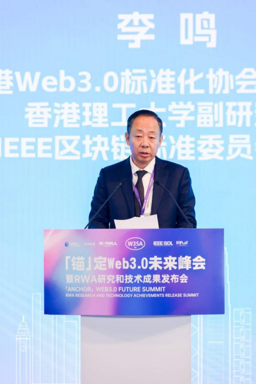 全国政协副主席梁振英指出,香港肩负着连接国际与内地两个市场的独特使命,正致力打造全球数字经济创新高地。在Web3.0发展浪潮中,我们以开放包容的格局,推动构建更加健康、开放、可持续的全球Web3.0生态体系。香港Web3.0标准化协会应以标准为依据,为全球现实世界资产数据化、资产化和金融化提供全过程闭环解决方案。