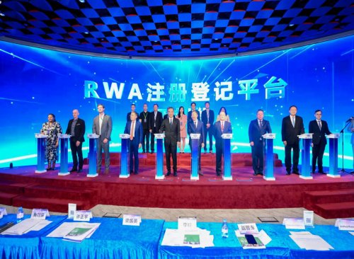 中国移动国际公司董事马子斌,紫荆杂志社总编辑袁建,香港中资银行协会会长、原香港银行工会主席岳毅,华夏基金(香港)行政总裁甘添,香港股票分析协会主席分会主席Jason Wong,方舟控股、曙光股份董事长贾木云,香港新闻社副社长余得水,航天文创产业研究院院长寇津晖,Indonesia Fintech Association Chrisma Aryani Albandjar等产业界专家代表上台,共同鉴证全球首个RWA注册登记平台正式上线。