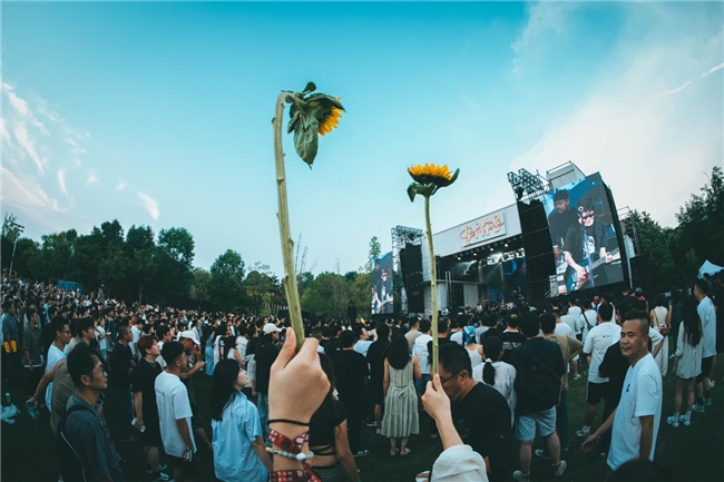 在其他消费场景,“超级本能”还与成都当地的特约餐厅、宾馆达成协议,为持电子门票的消费者提供打折。需要特别提到的是,“超级本能”还提前询问了在成都有自营店铺的观众,向其开放乐迷社群的推广、消费场景。一位开花店的谢天笑乐迷以“乐迷优惠价”带了近百枝“向阳花”到现场,真正实现了“乐迷消费内循环”。