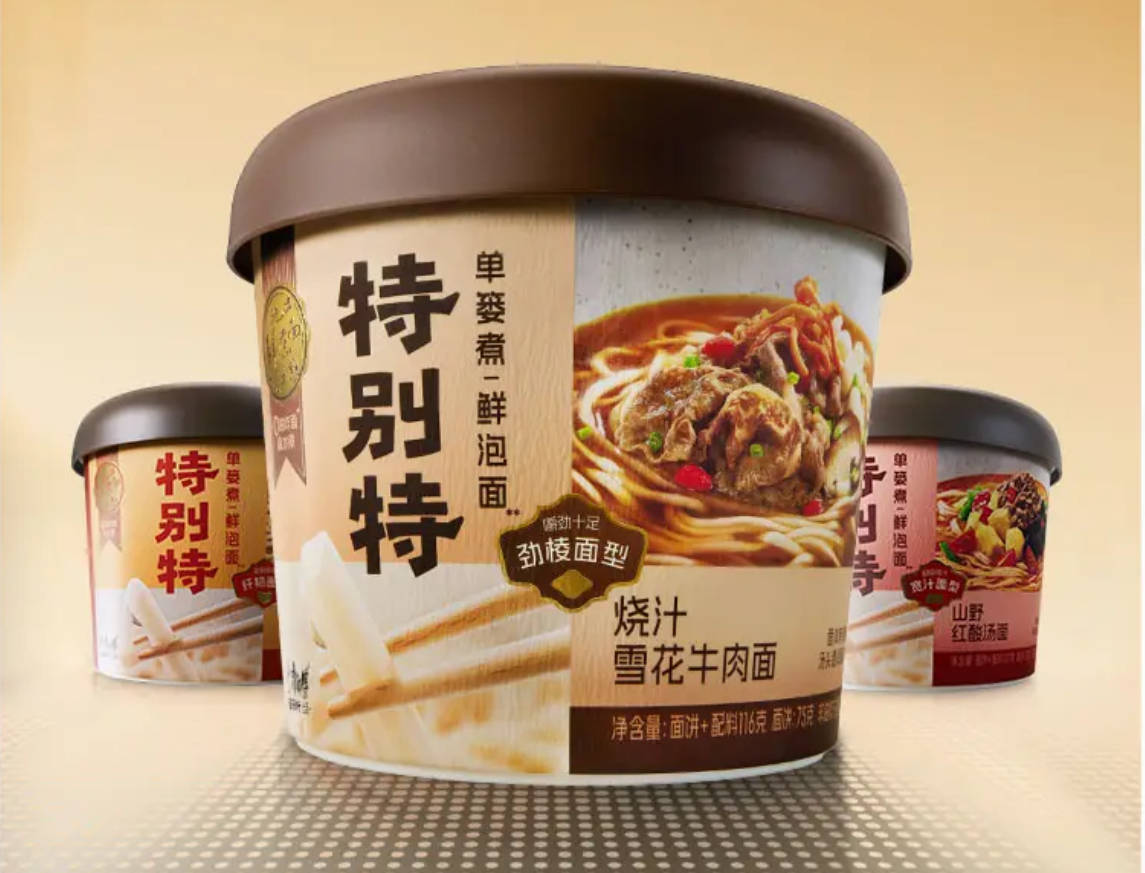 历经9年研发,康师傅在企业33周年之际,推出了重磅新品——“特别特”鲜泡面,采用0油炸的工艺,让消费者体验“泡的速度,煮的鲜度”,获得了沙利文认证的“中国单篓水煮工艺鲜泡面开创者”的称号。该产品一次性推出的三款全新口味,烧汁雪花牛肉面、海味龙虾汤和山野红酸汤口味,搭配独特的3种面型,为消费者随时随地提供不将就、体面的一餐。值得一提的是,这也是康师傅第一次把筷子嵌在泡面盖上,真实还原吃面体验,重构对泡面的想象。