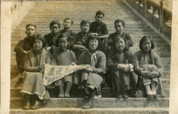 图片信息:1936年 许铁生和杭州国立艺专的芦花社的成员门在杭州绍兴禹王庙台阶前留影(后排左三为许铁生,后排右一为年轻的赵无极)