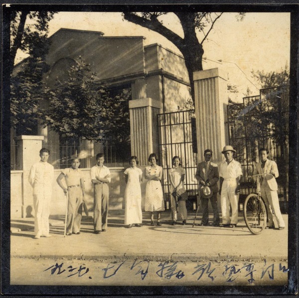 图片信息:1937年7月 许铁生与杭州国立艺专的部分同学在校门前留影(左三为许铁生)